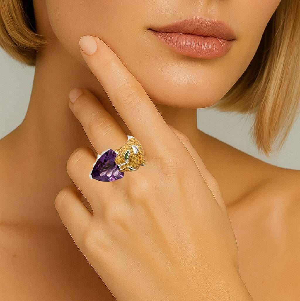 18k Two Tone Color Gemstone Panther Ring with Amethyst -V51232