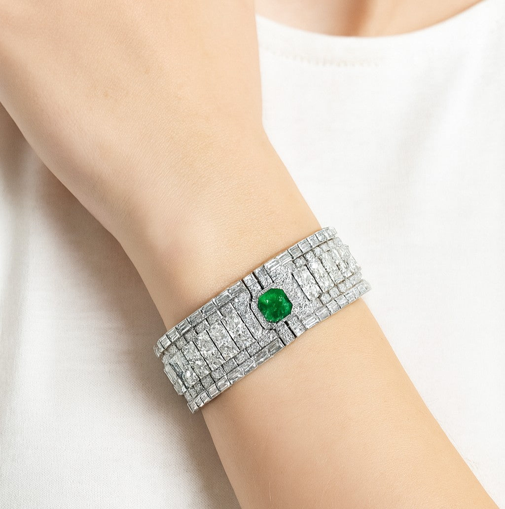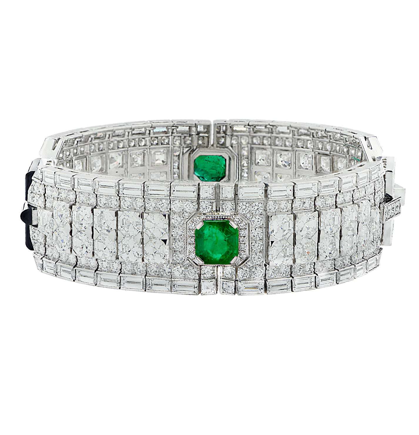 50 Carat Emerald and Diamond Bracelet in 18k White and Yellow Gold - V49396