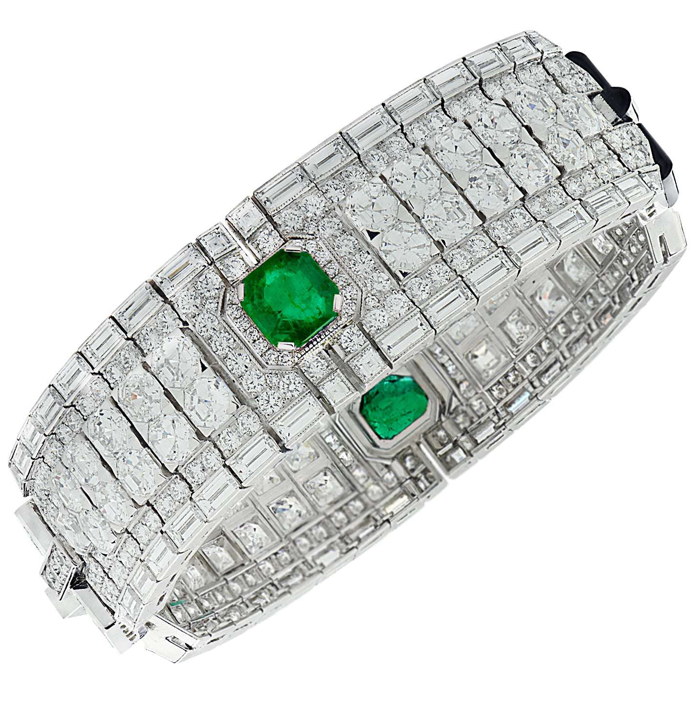 47Ct Emerald and Diamond Platinum Bracelet - Exquisite Artisan Luxury by Vivid Diamonds
