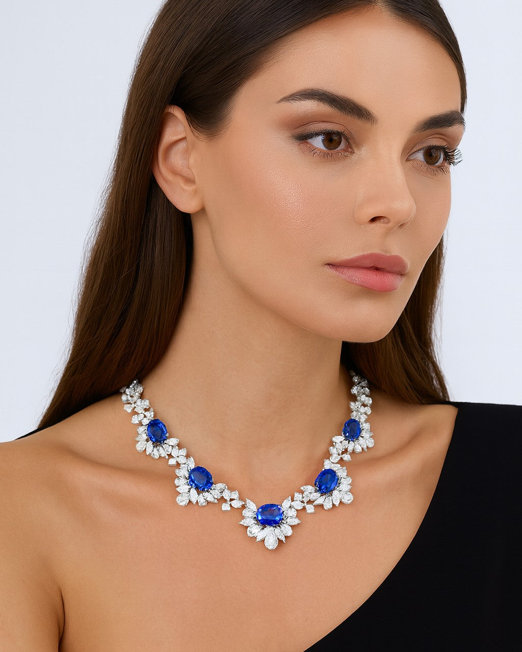40ct Oval-Cut Sapphire & 42.5ct Diamond Necklace in Platinum by VIVID - Exquisite Elegance