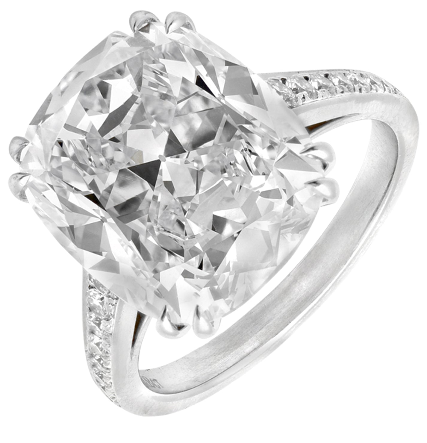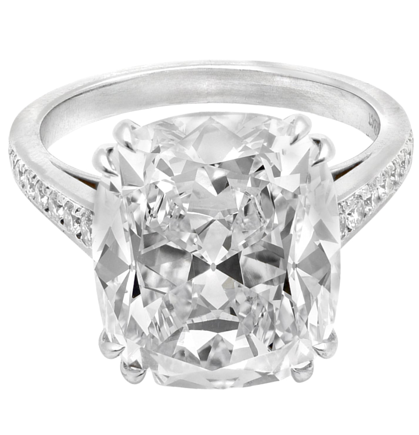 8ct Cushion Cut Diamond Ring with Cadillac Cut Accent Stones in Platinum - GIA Certified