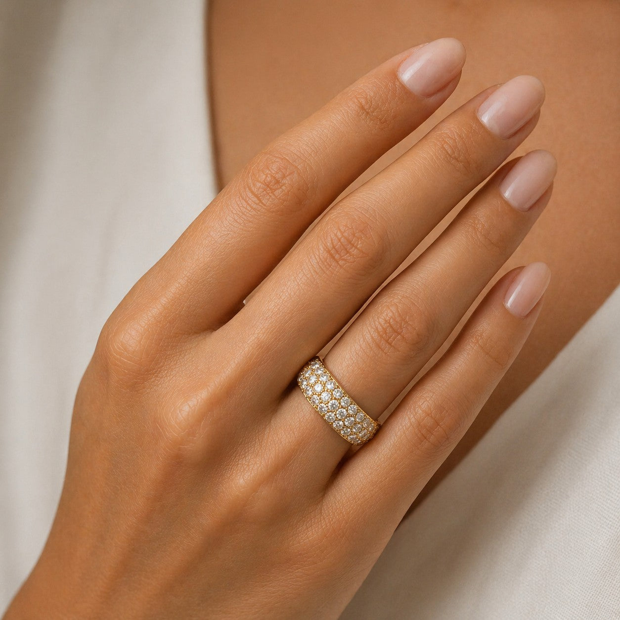 Born from Chanel's matelassé (quilted) leather pattern, Coco Crush translates those criss‑cross lines into curved rings, cuffs, and bangles. In 18k beige, yellow, or white gold, with or without diamonds, it's designed for stacking. You'll notice the satin versus high‑polish interplay that keeps large pieces wearable by day.