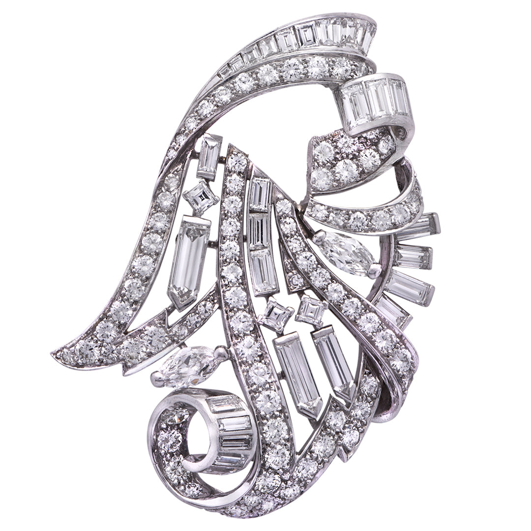 - 18k gold and platinum with hallmarks and maker's marks.