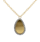 Understated and radiant, this diamond teardrop pendant necklace is a quiet show of elegance. Crafted from a sophisticated blend of 14k yellow and white gold, the pendant features a satin-finished yellow gold center framed in pavé-set diamonds. The result is a sleek, modern silhouette softened by the warmth of gold and the brilliance of diamonds.