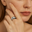 crafted in 18k white gold, each curve of the ring flows smoothly into