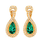 to highlight the dramatic beauty of pear-shaped emeralds, these earrings blend