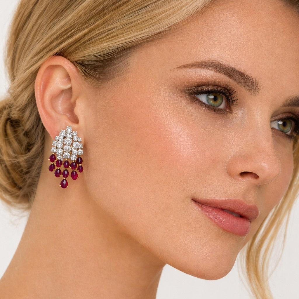 pairing of diamonds and rubies, these earrings capture timeless glamour through