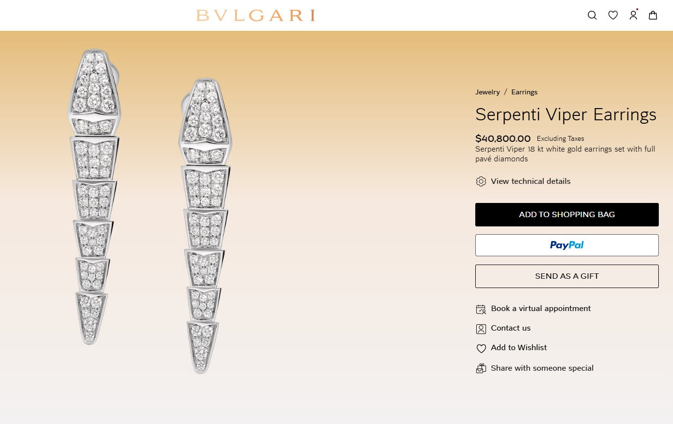 in iconic Italian luxury—add these Bvlgari 18k white gold Serpenti Viper