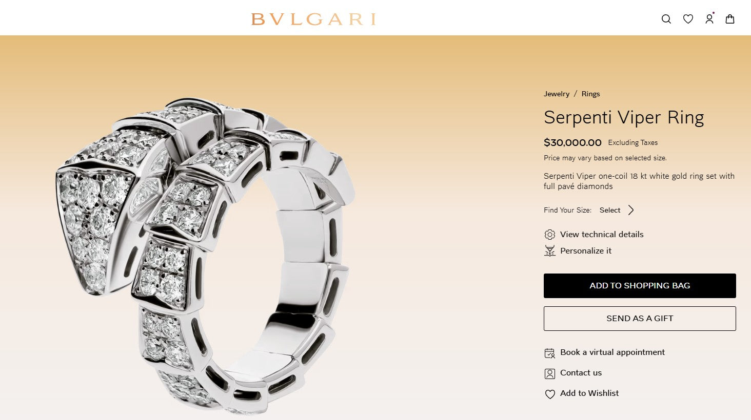 in iconic Italian luxury—add these Bvlgari 18k white gold Serpenti Viper