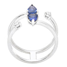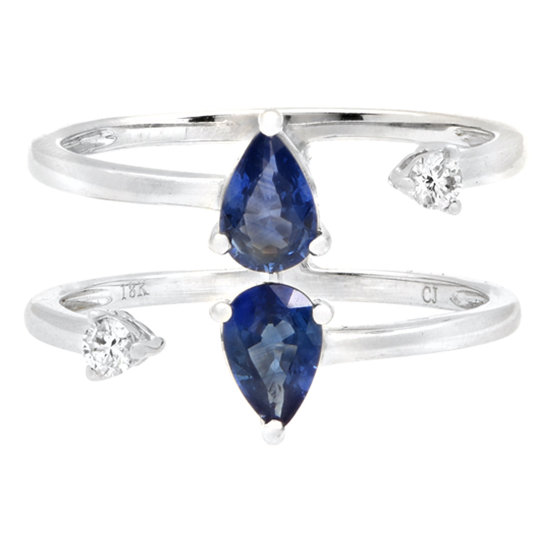 white diamonds. The design features two vibrant sapphires totaling 1