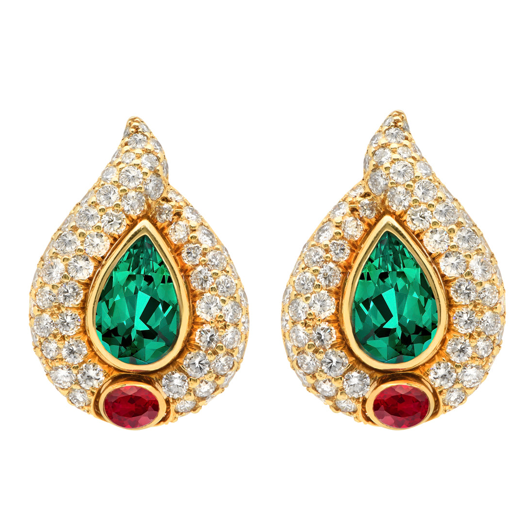 by Bvlgari’s iconic use of vibrant color and luminous gemstones, these earrings