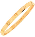 Every Cartier Love Bracelet is meticulously engineered for balance and durability. Its polished yellow gold finish highlights both the sleek design and the unmistakable Cartier hallmark, ensuring authenticity and timeless appeal.