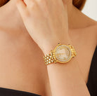 gold, this exquisite timepiece exudes sophistication with its luminous polish