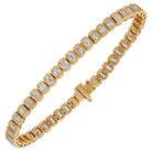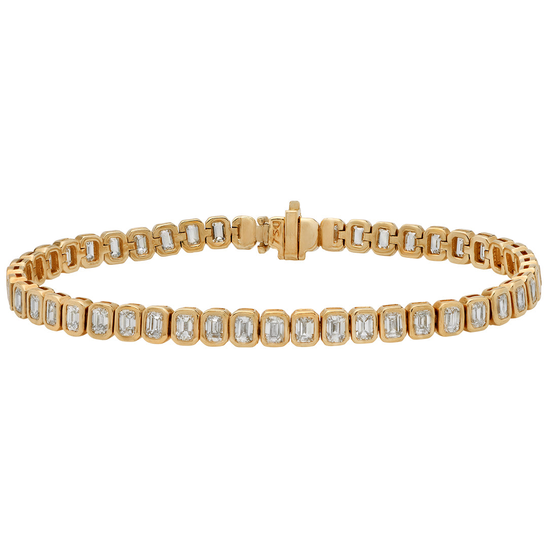bracelet is crafted in rich 18k yellow gold and set with elegant emerald-cut