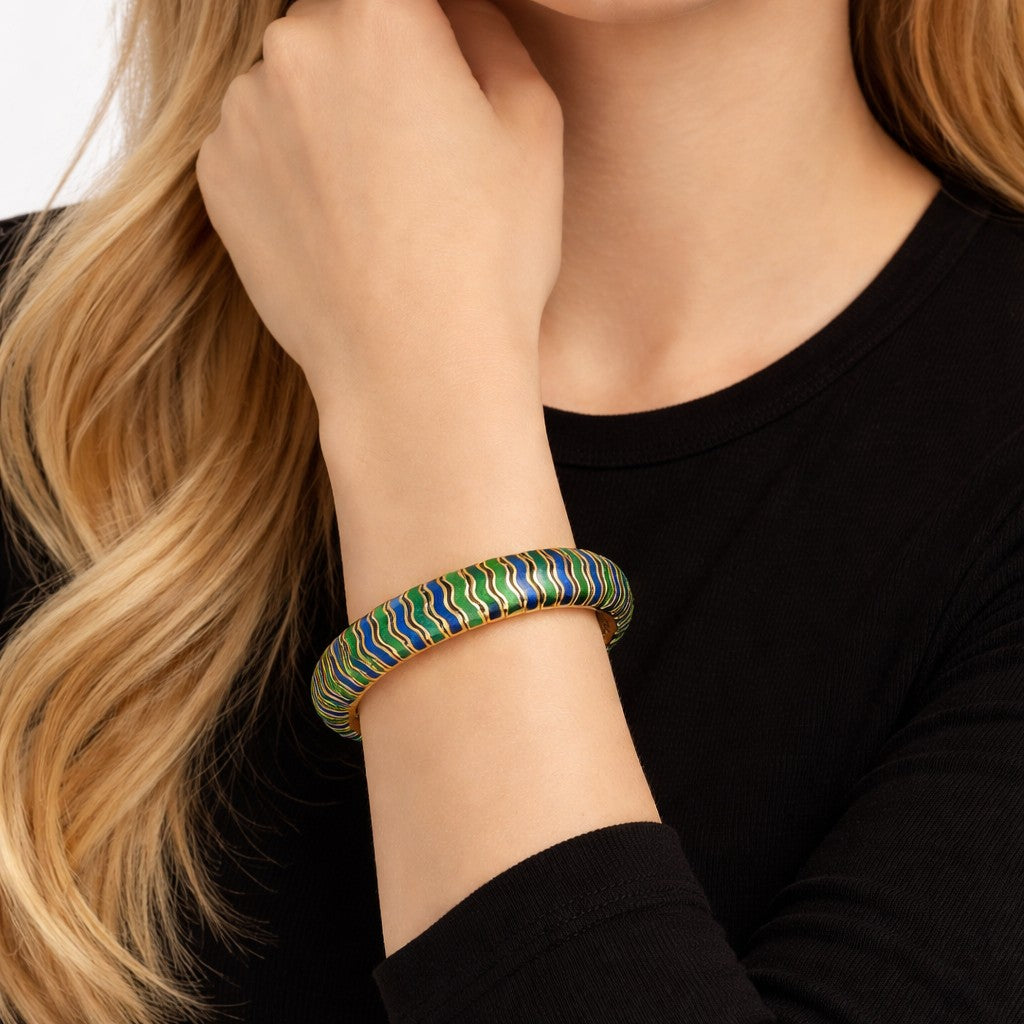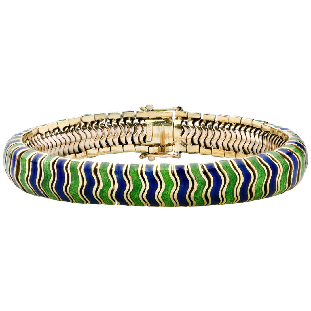 to showcase Tiffany’s mastery of color and fine goldwork, this bracelet blends