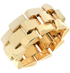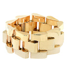 bracelet celebrates form, texture, and bold gold design. Its voluminous