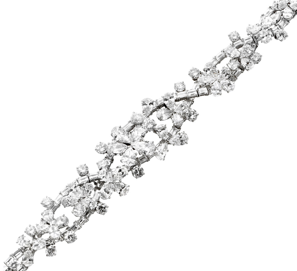 bracelet features an artful composition of mixed-shape diamonds chosen