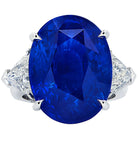 showcases an extraordinary 21-carat oval-cut sapphire of vivid, velvety