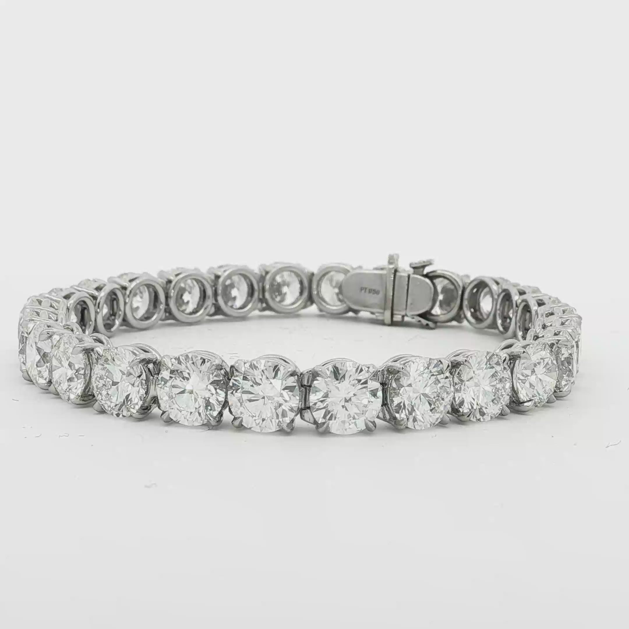 Featuring 26 round brilliant cut diamonds with a total weight of 26.78 carats, this bracelet is a perfect symbol of luxury and refined style. Each diamond is hand-selected for its exceptional quality, ensuring a harmonious balance of beauty and brilliance. The GIA Certified diamonds exhibit an H color and VS2 clarity, ensuring that only the finest stones are used.