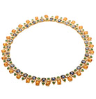 A breathtaking expression of high jewelry artistry, this luxurious necklace is crafted in radiant 18k yellow gold and adorned with an extraordinary composition of diamonds and vivid mixed gemstones. Designed to captivate from every angle, the piece features 186 round brilliant diamonds totaling 13.25 carats, perfectly complemented by 148 richly colored gemstones weighing an impressive 74.15 carats. With a substantial total weight of 76.50 grams, this necklace embodies opulence, brilliance, and masterful design—making it a true collector’s statement.