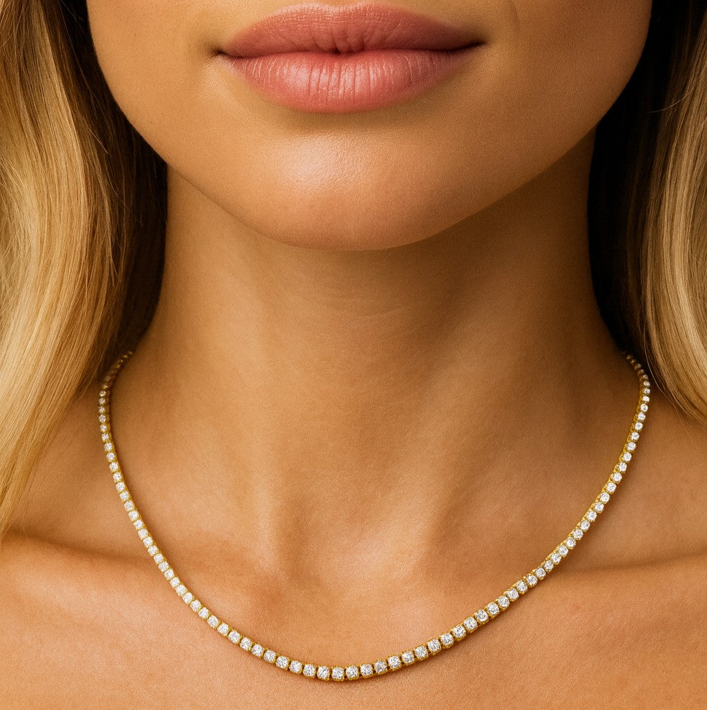 gold tennis necklace is a stunning essential for any fine jewelry wardrobe.