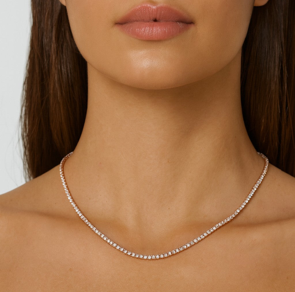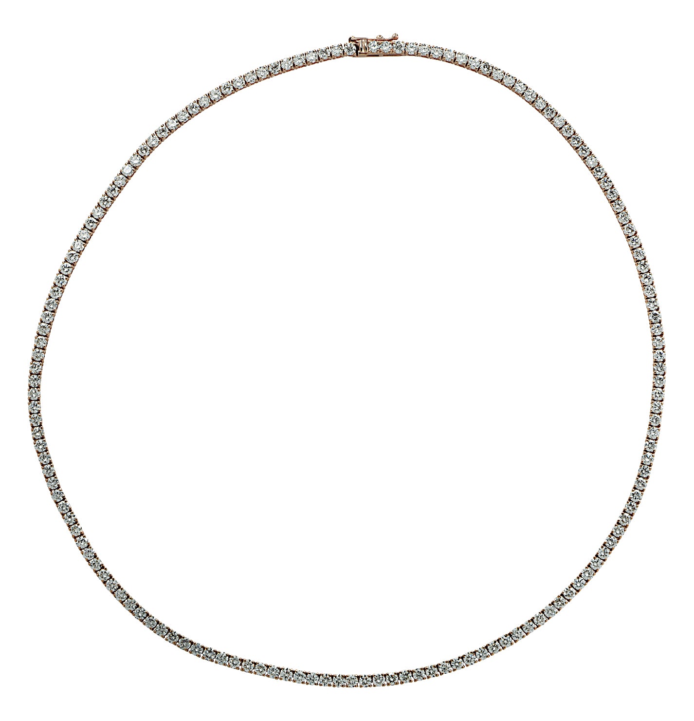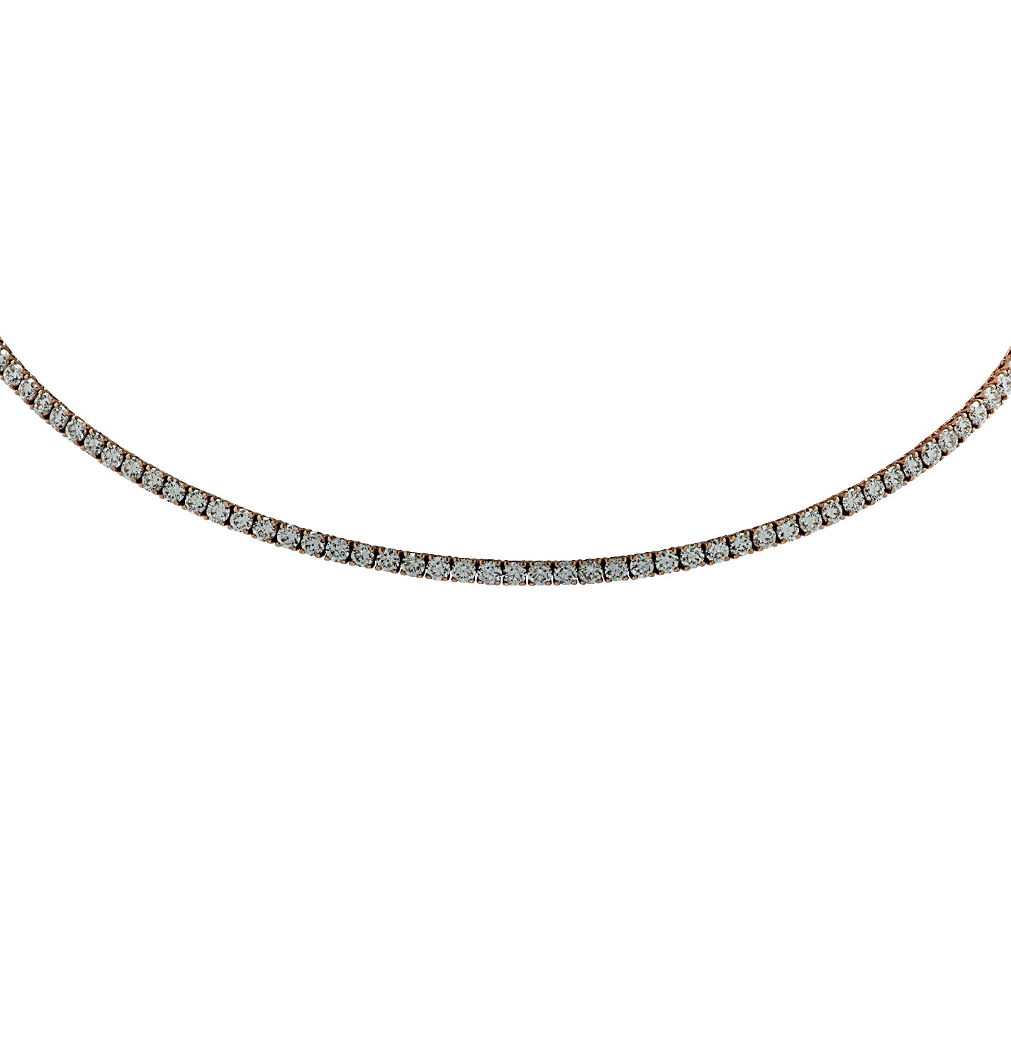 elegant straight line tennis necklace crafted in 18k rose gold,
