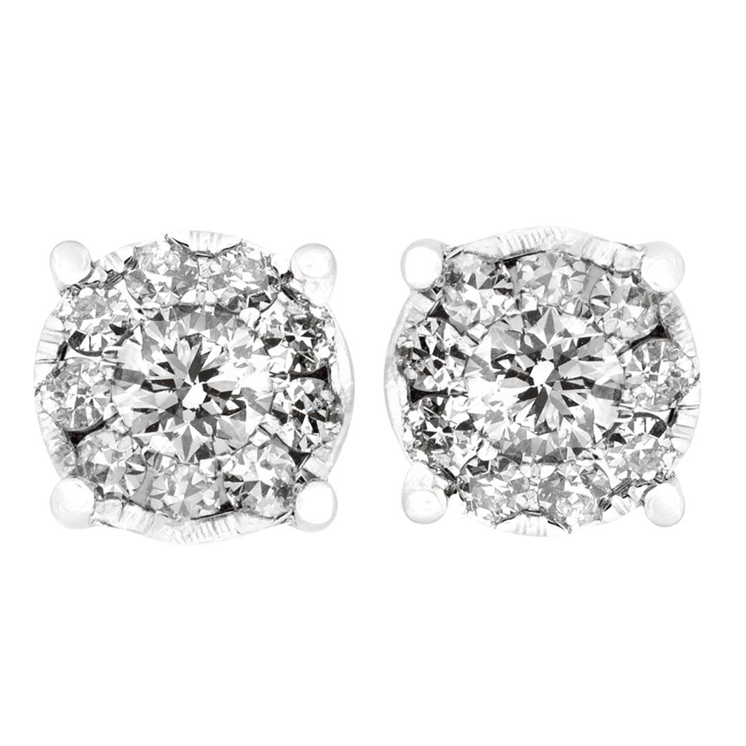 white gold earrings feature 20 round brilliant diamonds totaling 1.55 carats.